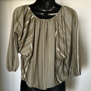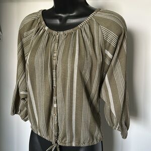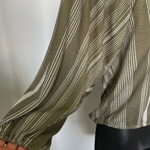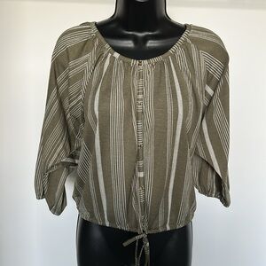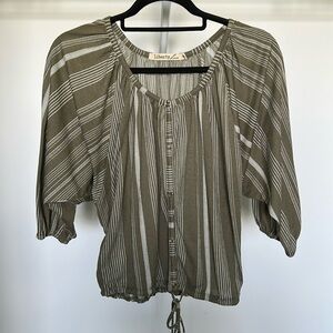 LIBERTY LOVE Olive Striped Women's Top Size Small
