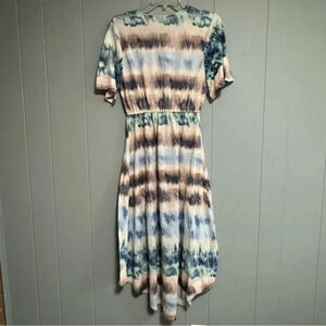LIBERTY LOVE Tie Dye Swim Cover Tie Waist Wrap Blue Brown Green Cream Size M
