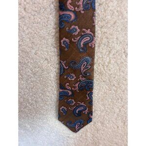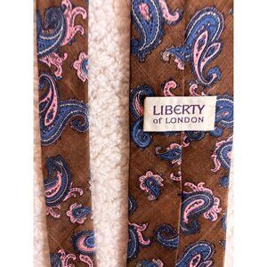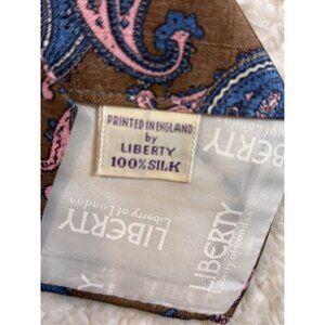 LIBERTY OF LONDON MENS NECK TIE SILK HANDMADE FLORAL Brown And Pink L55 W3.5