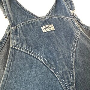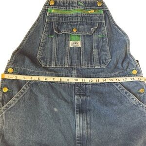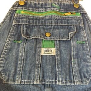 LIBERTY Vintage Blue Denim Cargo Bib Overalls Green Accents Men’s Size 36x28
