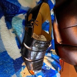 GENUINE LEATHER ADULTS BUCKLE CLOSURE FISHERMAN SANDALS UPER AND LEATHER LINING Slip-on design for easy wear. Perfect for formal or casual settings. EXQUISITE CROCODILE PRINTED SIZE 11 BLACK with box