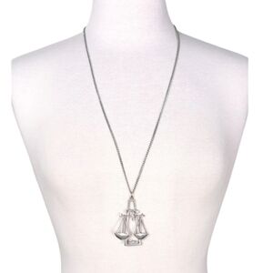 LIBRA Astrology Zodiac October Scale Vintage Necklace Long Pewter Pendent Silver