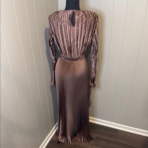 L’IDÉE Women’s 4 Maxi Ruched Long Sleeve Pleated Gown