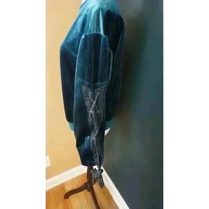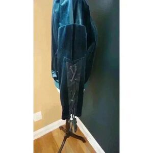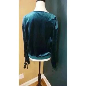 Title: LIE by Lee Chung Chung Velvet Lace-Up Sleeve Top in Teal - Size S