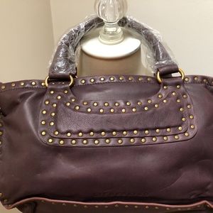 This is a beautiful satchel by LIEBESKIND BERLIN. It is BRAND NEW w/tags. It is dk red (maroon) studded leather with a velvet contrast lining! It comes with a dust bag.