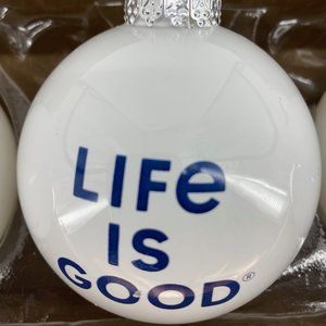 Description: The Life is Good Christmas Ornaments gives the special connection of love, closeness and harmony. During the seasonal decoration, these ornaments will help bring cheer and gentle reminder of the beauty of love. Each white ornament has an artistic design with a specific meaning around love and attached with an embroidered style ribbon. The first holiday ornament has the famous, "All We Need is Love" in seasonal colors and the Life is Good inside a heart next to the graphic. Second ornament has a light blue pickup truck with the bed of flowers along with the L O V E on the tailgate. On the license plate of this ornament, there is the "LIG-247" for Life is Good 24/7 with the Life is Good captioned below. The third ornament has the "Love Unites Us" with the floral arrangement and Life is Good below the bouquet. For the reverse side of each ornament is the Life is Good logo. Every ornament is unique and special. Christmas ornaments will be a great collectible set for the Life is Good's fans and those who love wonderful meaning. LIFE IS GOOD | ALL WE NEED IS LOVE | ORNAMENTS