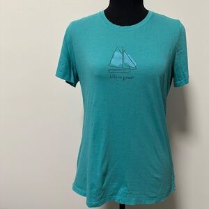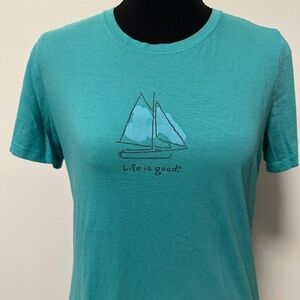 **LIFE IS GOOD* Blue Short Sleeve Sailboat Shirt Size Small