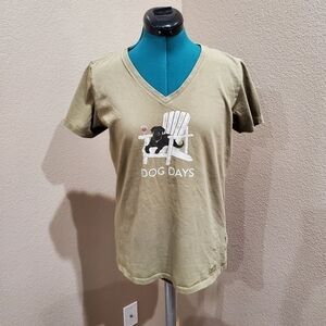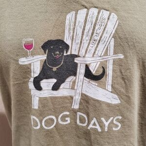 LIFE IS GOOD CRUSHER TEE T-SHIRT GREEN DOG DAYS BLACK LAB WINE PATIO WOMEN M