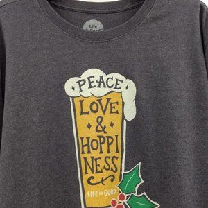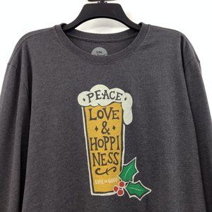 LIFE IS GOOD Crusher T Shirt Men's L Gray Beer Holly Love Graphic Print Top