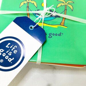 New with tags Life Is Good set of 4 melamine plates in the Vintage Collection. 6" square indoor/outdoor shatter proof plates.