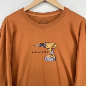 LIFE IS GOOD Shirt Men 2XL ACTION HERO Drill Tools Long Sleeve Tee Cotton Orange