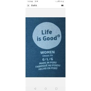 LIFE IS GOOD HAPPY HOUR TEE PALM TREES GRAPHICS NAVY BLUE WOMENS LARGE