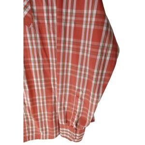 LIFE KHAKI SHIRT SLIM XL BUTTON DOWN POCKETS PLAID ORANGE LONG SLEEVE