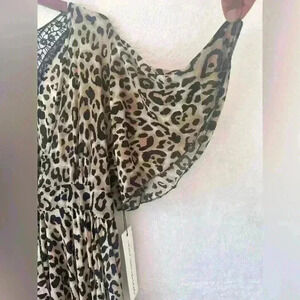 L.I.F.E. Leopard print Sheer Kimono coverup Women's L Retro Cottagecore Beach