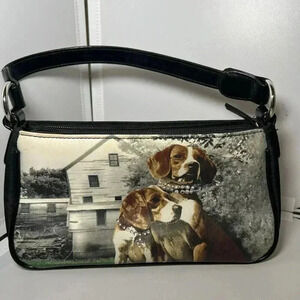 LIFE Magazine Purse Two Dogs With Rhinestone Collars Trees House Grass 9X5 Inch