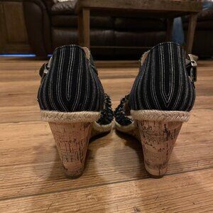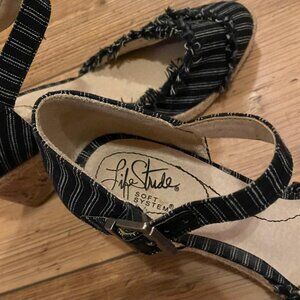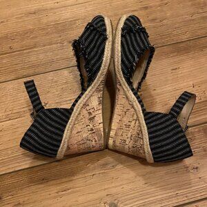 LIFE STRIDE Leena Wedge Black & White Stripe Sandals Cork Heel Women's Size 7W