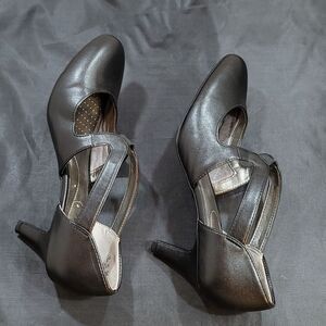 LIFE STRIDE SOFT SYSTEM WOMEN'S KITTEN HEEL SHOE SIZE 7.5M COLOR BLACK ROUND TOE CRISSCROSS STRAP MADE WITH ALL MAN MADE MATERIALS UPPER TEXTILE OUTSOLE MAN MADE LINING BALANCE CUSHIONED FOOTBED FOR ALL DAY WEAR HEEL HEIGHT MEASUREMENTS APPROX 2"INCHES THIS ITEMS IS PRE-OWNED EXCELLENT CONDITION WITH ONLY LIGHT SIGNS OF WEAR IF ANY CHECK THE PICTURES