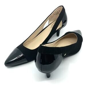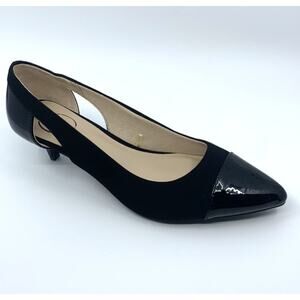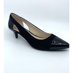 LIFE STRIDE's Women's Black Patent and Faux Suede Marianna Kitten Heel Pump with Cut-out design. Perfect for any occasion, and designed for all day comfort. Size 11 M (B, medium). NEW unworn undamaged shoes; ships without box.
