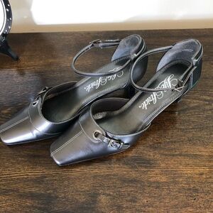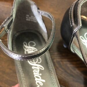 Life Stride pewter gray color with ankle straps squared toe very pretty great condition size 7