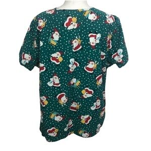 LIFE Women’s Christmas Scrub Top Sz Large Multi Color Short Sleeves Pockets