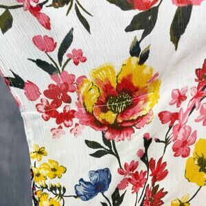 Cream Base With Vibrant Pink, Yellow, Red, And Blue Floral Print