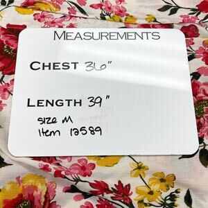 Please see photos for measurements. To ensure proper fit please compare flat lay measurements of a current well-fitting garment