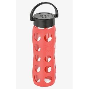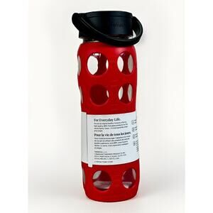 LIFEFACTORY 22 oz Glass Water Bottle With Silicone Sleeve Screw Top - Poppy RED - BRAND NEW!