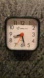 LIFELONG Travel Alarm Clock; Black Plastic Housing, White Face w/Black Numbers & Red Second Hand; Alarm & Timeset Dials on Back; Alarm On/Off Seitch on Top; Compact - 2.25" Square, 1.25" Deep; Runs on ONE AA Battery (not included).