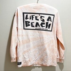 LIFES A BEACH Women’s Y2K Orange Peach Tie Dye Graphic Long Sleeve Tee Size Small. Good Pre-owned condition. Gentle signs of wear. No stains or holes. All measurements are approximate.