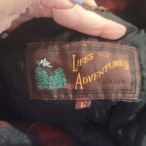 If ou like woolrich you will like LIFES ADVENTURES red black buffalo plaid check wool jacket coat Large has two button close front pockets, quilted lining, two front side slash hand pockets. Measures approx 26 pit to pit across back. Check out our closet and bundle to save 💵bundles over 5 lbs will require purchase of extra postage. Offers always welcome 😊Non-smoking cat friendly home 😻Bookmark our closet as new items added weekly 💕thank you for shopping our closet.