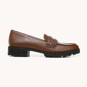 Step into timelessness. A casual penny loafer like this belongs in your cart and on your feet. Faux leather upper with a rounded toe, slip-on fit, stitched details, and lug sole. Vamp and sock lining, toe box and heel counter partially crafted with recycled materials.