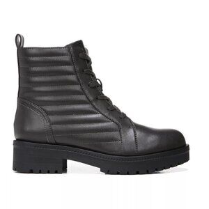 Rain, snow, or shine. This water-resistant combat boot always looks on-trend. Water-resistant faux leather upper with a round toe, inside zipper, back pull tab, puffed and padded detailing, and substantial lug sole. Toe box, heel counter, linings, sock foam, and outsole made with 60% recycled materials. Soft System® comfort package provides all-day support, flex, and cushioning. Premium comfort design with LifeStride In Motion® technology, crafted with two layers of lightweight foam for shock absorption & rebound, ultra-flexible soles. Traction sole provides you with extra stability. Just Right Height 1.75-inch block heel.