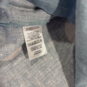 LOafT linen + viscose light blue and white polka dot-top. Shortsleeved. Size M. Measurements are 21.5” from armpit to armpit and 23” long.
