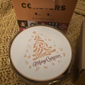LIFVER Christmas Coasters & Holder , Christmas Tree “Merry Christmas” New