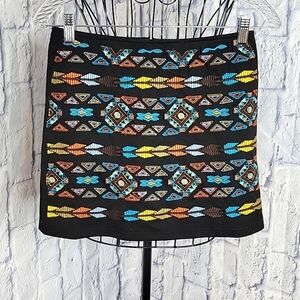 LIGALI Embroidered Southwestern Print Mini Skirt Small