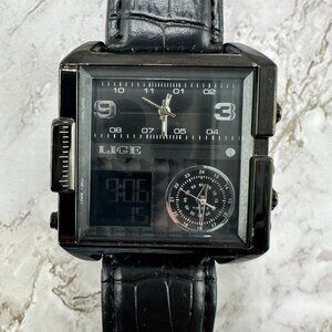 LIGE Watch Men Black Analog Digital Triple Time 42MM Dial New Battery 9.5 Inch