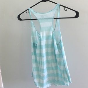 Perfect for summer. XS light blue and light blue striped. Originally from tilly's. Very very small tear on the back. I loved this shirt but I no longer fit in it. PLEASE LEMME KNOW IF YOU HAVE ANY QUESTIONS AT ALL:)