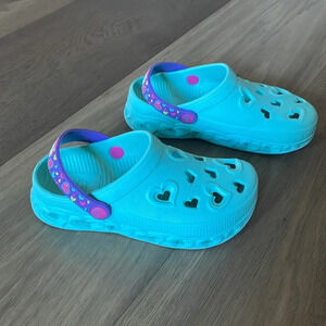 Step into magical heart-filled style with Skechers Foamies®: Light Hearted - Unicorns & Sunshine. This light-up sculpted comfort slip-on clog features a flexible perforated EVA upper with a light-up midsole and convertible heel strap.