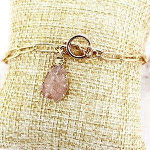 LIGHT ROSE DRUZY PENDANT TOGGLE BRACELET
