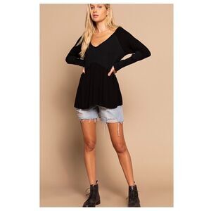 Light wash long sleeve top with rib textured sleeve and torso detail .