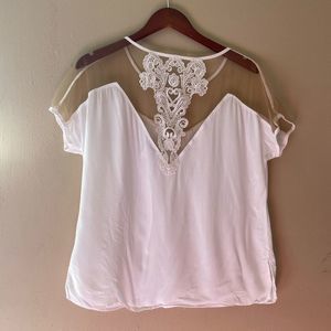 Light weight shirt with decorative mesh is perfect for spring/ summer