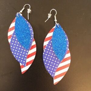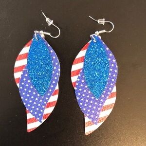LIGHTWEIGHT Dangle Faux Leather 3 Layer Patriotic Teardrop Earrings
