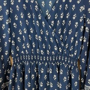 Lightweight long sleeve Navy blue and white patterned dress perfect for spring and summer