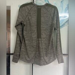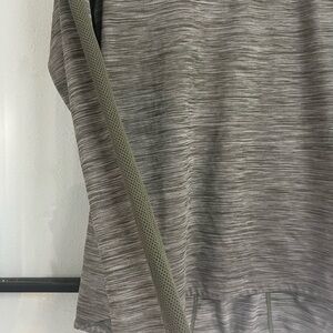 Stylish long sleeve top by LiJA. Features a sleek gray design. Perfect for active wear. EUC