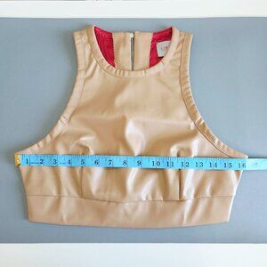 LIKA Eco Leather Set - Crop Top & Convertible Shorts / Pants in Beige Sz Small