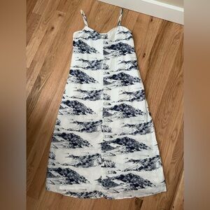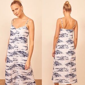 LIKE NEW 100% Linen Reformation Gisele Midi Dress Covina White Blue Size Small