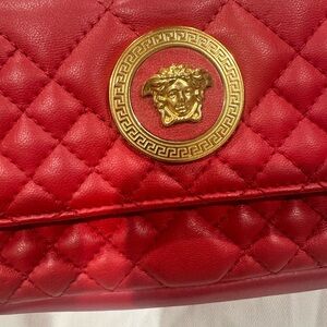 LIKE NEW AUTHENTIC Versace Red and Gold Quilted Crossbody Bag