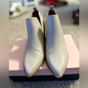 Worn once for a few hours. Excellent condition. Step out in style with these elegant cream ankle boots. Perfect for any occasion, these boots offer both comfort and sophistication.