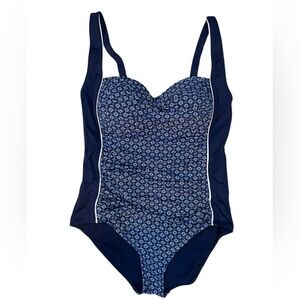 LIKE NEW Bond-Eye Swimsuit Australia Blue & White Floral Pattern Shelf Bra US 8
