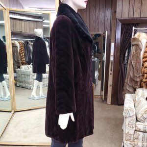 Burgundy dyed Mink Fur Sections 36" Coat with Black dyed Sheared Beaver Fur Collar